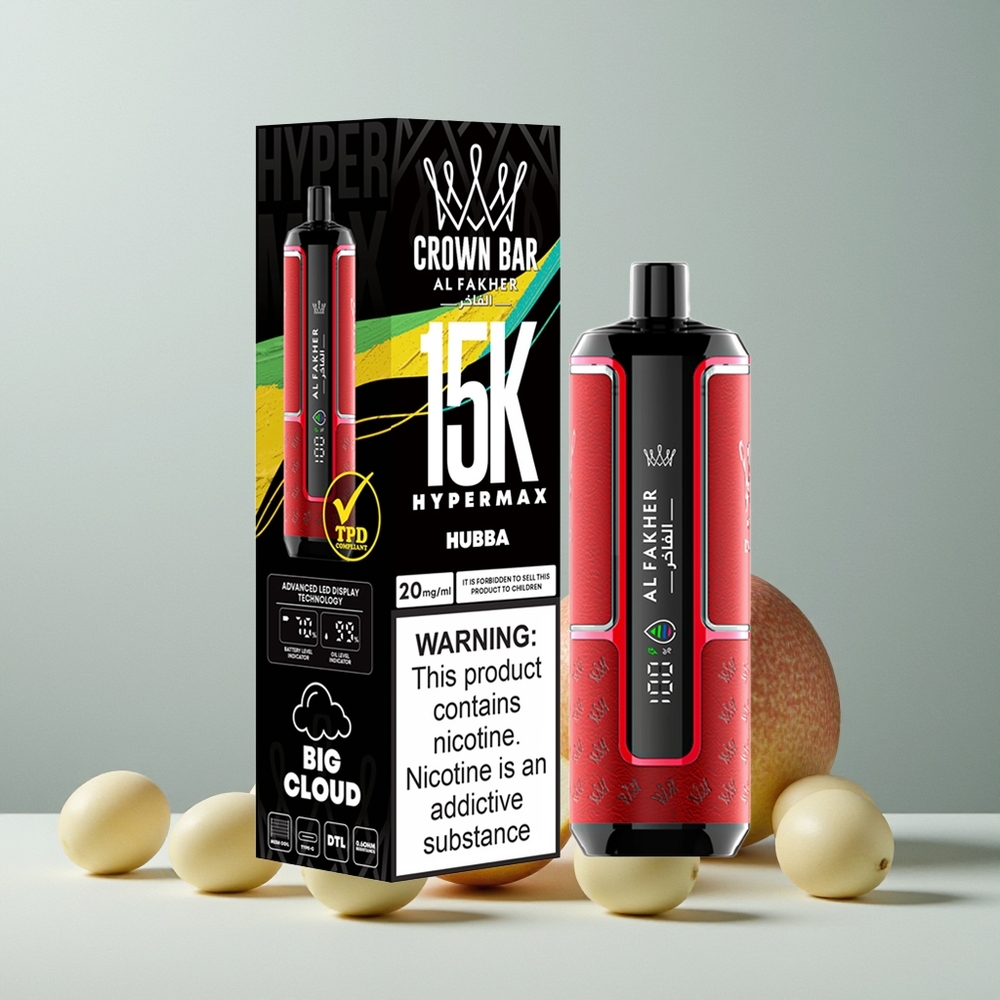 استمتع بتجربة تدخين استثنائية مع Al Fakher Crown Bar 15K Hypermax سيجارة إلكترونية للاستخدام مرة واحدة Kit، المصمم للأداء المتفوق والراحة القصوى. هذا الجهاز المبتكر يجمع بين السعة الكبيرة والعمر الطويل، مما يجعله الاختيار الأمثل لمحبي السحبة العميقة (DTL).