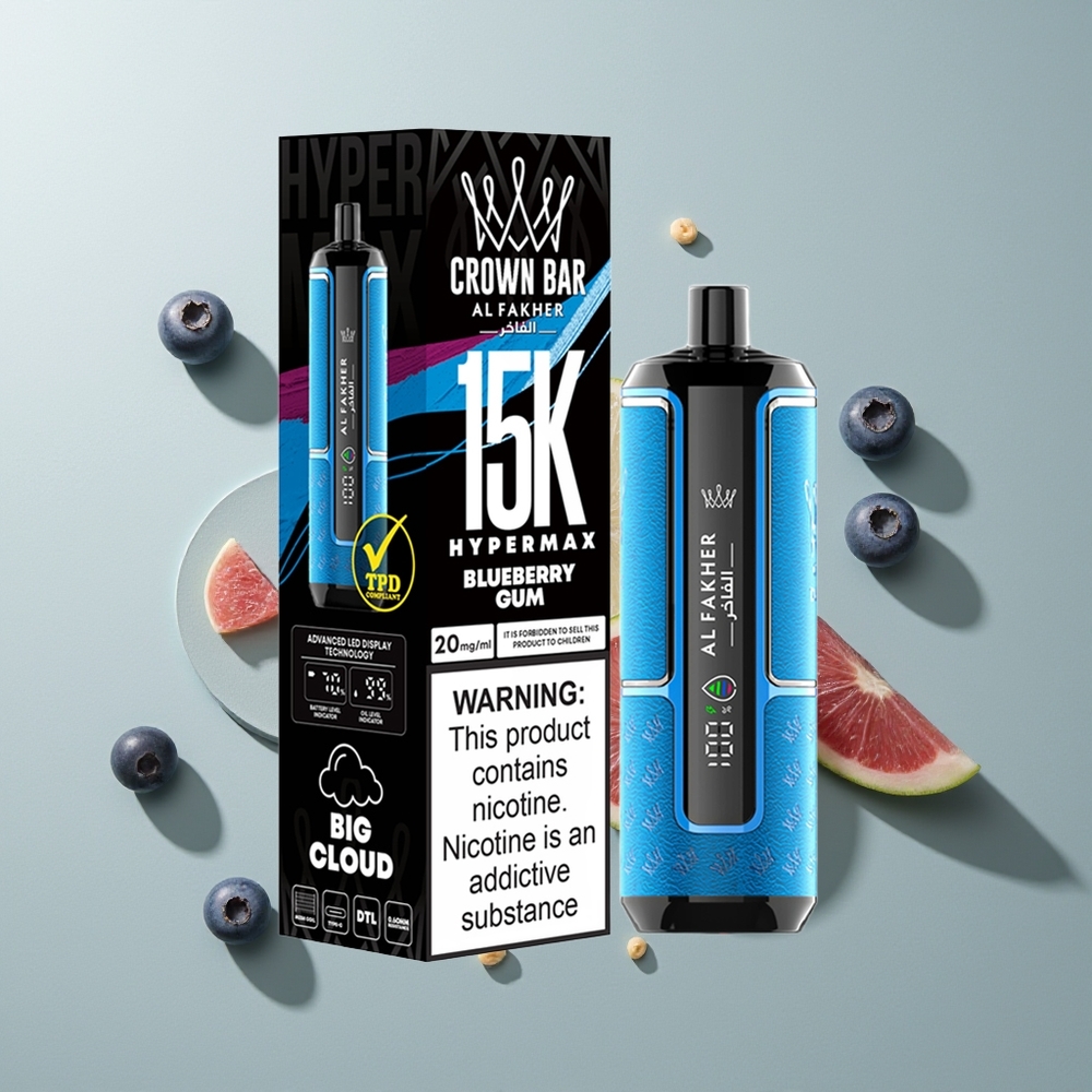 Al Fakher Crown Bar 15K Hypermax علكة التوت الأزرق مع سعة 22 مل وبطارية 600 مللي أمبير