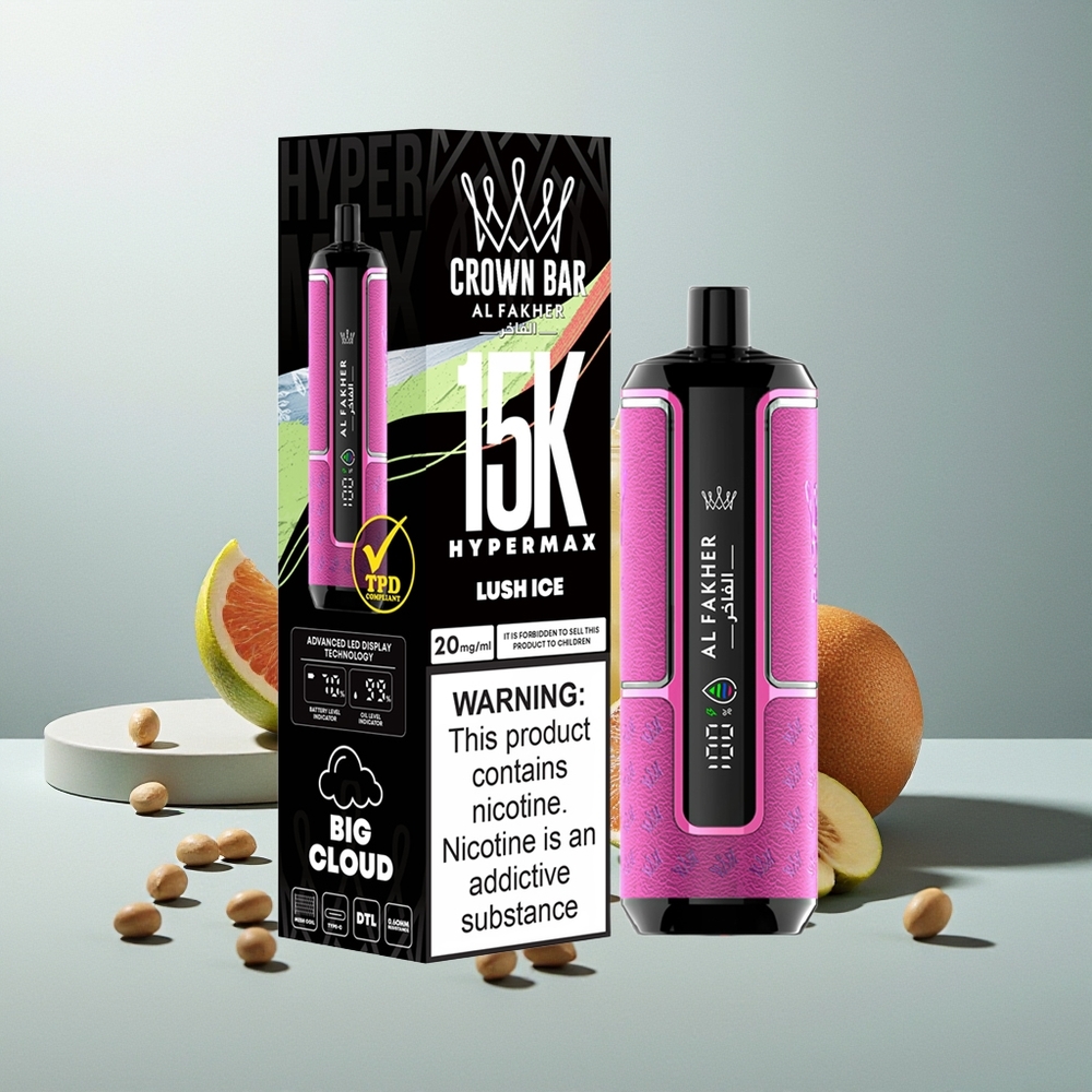 استمتع بتجربة تدخين استثنائية مع Al Fakher Crown Bar 15K Hypermax سيجارة إلكترونية للاستخدام مرة واحدة Kit، المصمم للأداء المتفوق والراحة القصوى. هذا الجهاز المبتكر يجمع بين السعة الكبيرة والعمر الطويل، مما يجعله الاختيار الأمثل لمحبي السحبة العميقة (DTL).